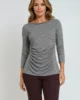 Bluzka z dzianiny z długim rękawem i marszczeniem przodu. Półokrągły dekolt obszyty dekoracyjną aplikacją. Dzianinowa bluzka z rękawami o długości ¾. Z przodu miękko układające się marszczenia tworzące misterną draperię niwelującą niedoskonałości sylwetki.