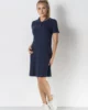 Lekko rozszerzana sukienka z kołnierzykiem polo i guziczkami. Dopasowana zaszewkami biustowymi. Wkładana przez głowę. Po bokach kieszenie wykończone tkaniną wiskozową. Sukienka bez podszewki. Uszyta z bawełny organicznej Bio.