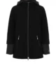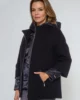 Dwuczęściowa kurtka damska wełniana i puchowa. Obie można nosić oddzielnie. Wierzchnia, wełniana kurtka damska ma obszerny krój z szerokim rękawem kimono o długości 3/4, stójką i ukośnymi kieszeniami wykończonymi suwakami. Wewnętrzna kurtka puchowa damska z kapturem uszyta z cienkiej tkaniny technicznej na piance jest delikatnie dopasowana cięciami pionowymi w przodzie i tyle, zapinana na suwak wszyty do końca kaptura. Ma dwie kieszenie. Całość na wiskozowej podszewce.