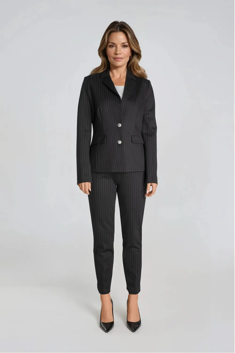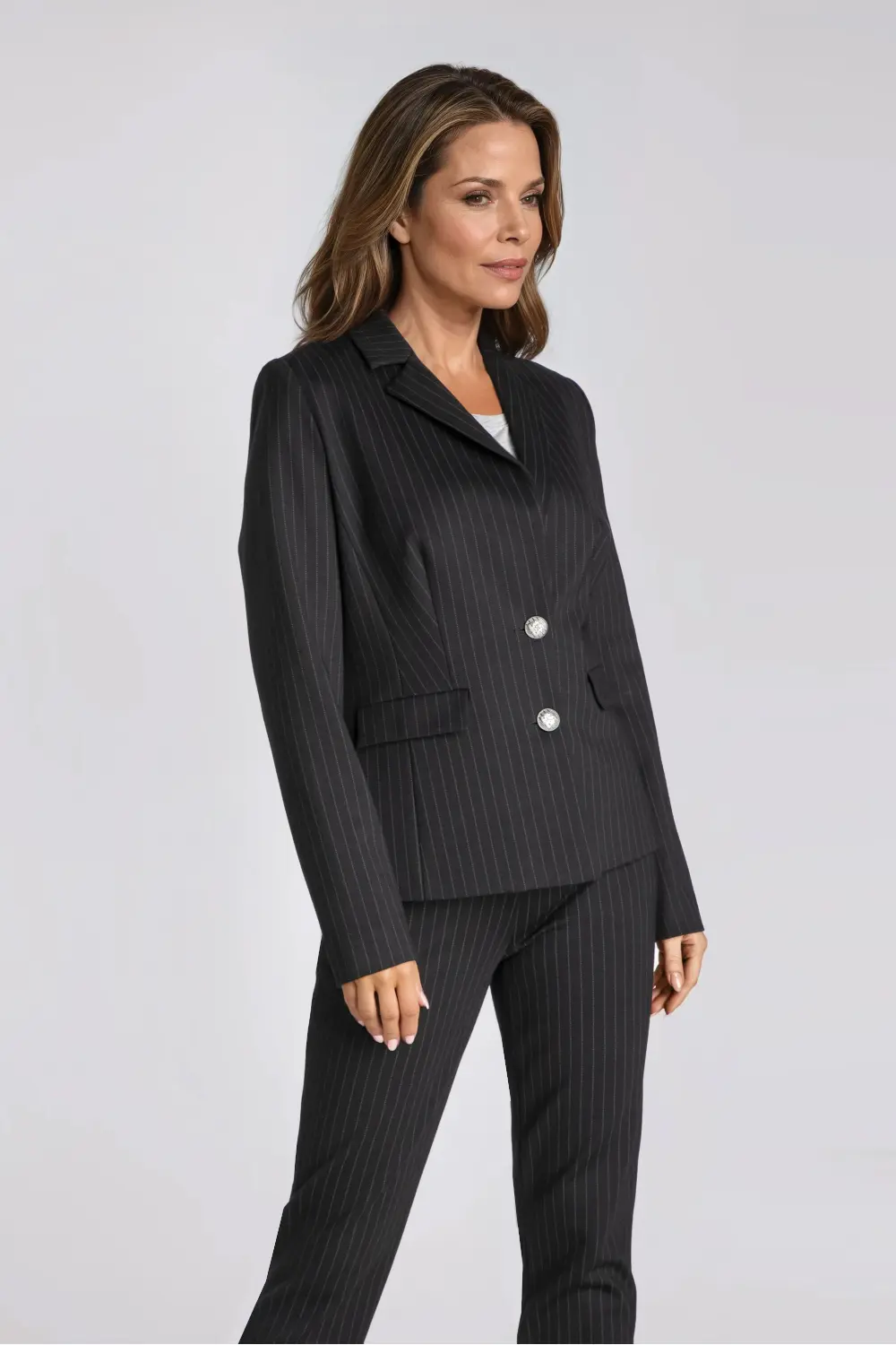 Czarna marynarka damska w prążek