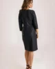 Wygodna sukienka wizytowa w czarnym kolorze. Luźny fason uszyty z czarnej tkaniny ozdobionej błyszczącymi kreseczkami tworzącymi geometryczne kształty. Dekolt w serek, rękaw za łokieć. Z tyłu małe rozcięcie. Zapinana z tyłu na kryty zamek błyskawiczny. Sukienka bez podszewki. Modelka ma 171 cm.