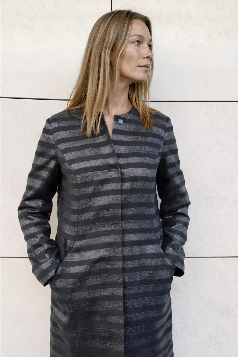 Czarny płaszcz w paski