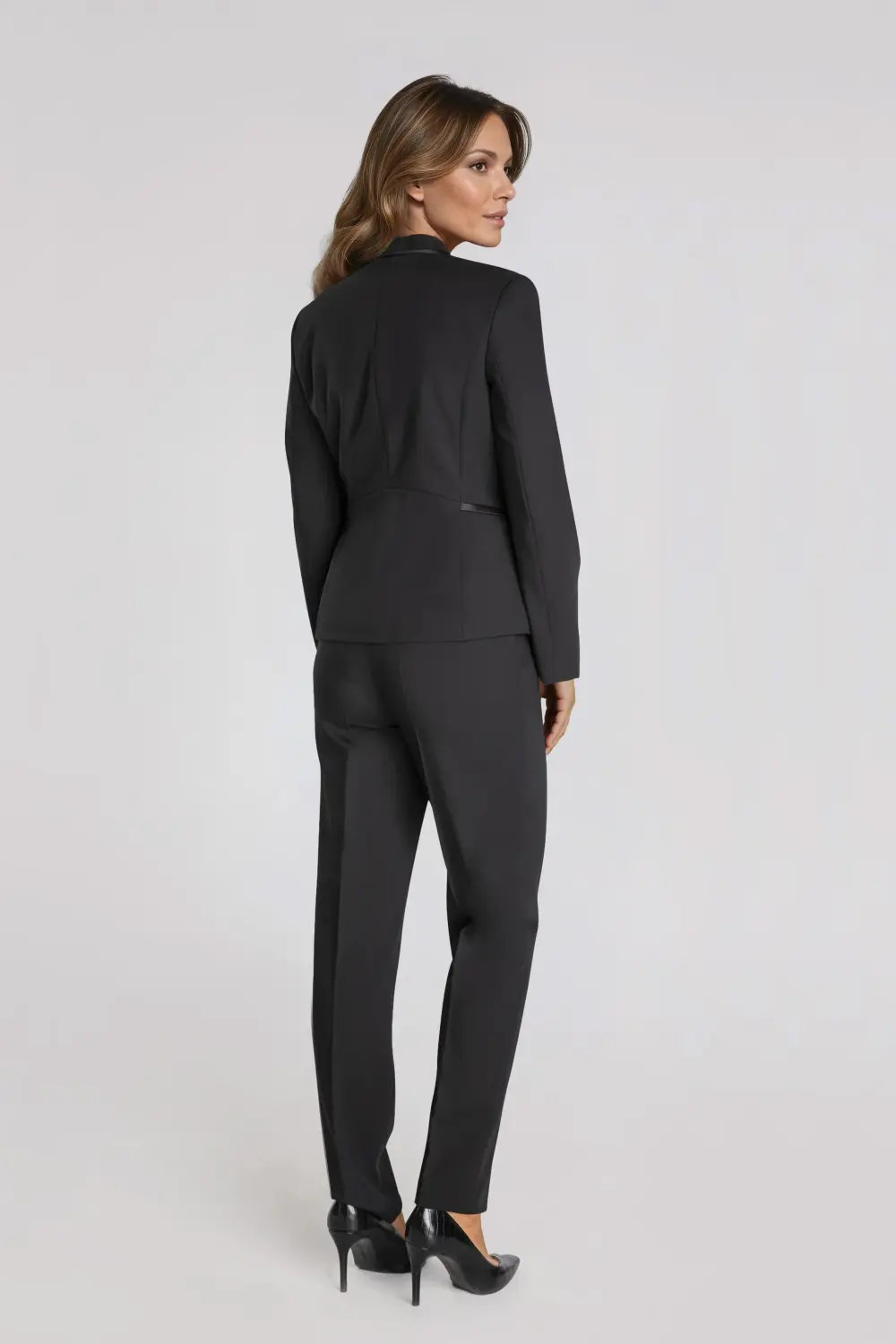 Klasyczny czarny żakiet z ozdobnymi suwakami i stójką, to elegancki model na wiele okazji. Sprawdzi się na formalne spotkania biznesowe, wyjście do teatru, jak i uroczystości rodzinne. Ten ponadczasowy klasyk uznany jest za kwintesencję elegancji. W ofercie Vito Vergelis dostępne są też spodnie damskie z szeroką nogawką i kantem – razem tworzą czarny garnitur damski na i jesień zimę. To doskonała alternatywa dla kobiet, które nie lubią sukienek, a potrzebują wizytowej kreacji. Elegancki garnitur damski sprawdzi się doskonale.