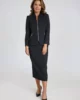 Ołówkowa spódnica midi o długości do połowy łydki, dzięki czemu jest doskonała na chłodne miesiące. Świetnie sprawdzi się w wizytowych stylizacjach, do biura lub na oficjalne spotkania. Noś ją w klasycznym zestawie z żakietem od kompletu albo połącz z jedwabnym topem, ramoneską i kozakami. Do pracy polecamy do białej koszuli i kardiganu. Zimą noś z miękkim swetrem i wysokimi, wiązanymi butami. Elegancka, granatowa spódnica o klasycznym kroju, to dobry wybór na sezon jesień zima 2026. Jeśli szukasz innych spódnic biznesowych, to zajrzyj na nasz profil na Instagramie i do naszego sklepu internetowego. W naszej kolekcji znajdziesz też inne granatowe spódnice i spódnice do pracy w małych i dużych rozmiarach.