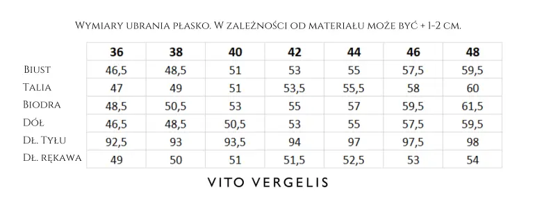 - Krój: prosty, nietaliowany
