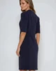 Sukienka z lekko sterczowej dzianiny. Fason mocno dopasowany do sylwetki cięciami pionowymi. Dekolt z doszytym pośrodku panelem sięgającym talii i stójką z pęknięciem. Rękaw do łokcia z pęknięciem z tyłu. Zapinana z tyłu na suwak. Sukienka na podszewce. Idealna na wczesną wiosnę lub jesień.