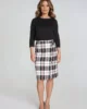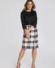 Jeśli tak, jak my nie wyobrażasz sobie szafy bez wzorów to spodoba Ci się nasza spódnica w kratkę. Modna spódniczka ołówkowa we wzór tartan w ponadczasowym zestawieniu kolorystycznym – bieli, czerni z czerwienią. Idealna do zimowej stylizacji z kozakami i krótkim futerkiem, ale nie tylko. Jeśli jesteś fanką tego ponadczasowego wzoru to możesz ją nosić też wiosną i jesienią. Ołówkowa spódnica w kratę pasuje do zestawów do pracy, jak i na świąteczne spotkania. Nasza stylistka radzi, by przełamać ją gładką górą. jak biała koszula, czarny golf, czy bluza ze stójką. Możesz też założyć białą koszulkę i czerwony żakiet. Pasuje do szpilek, skórzanych botków, czy trampek. Chcesz obejrzeć inne spódnice w kratę? Zajrzyj na nasz profil na Instagramie i do naszego sklepu internetowego. W kolekcji znajdziesz inne spódnice 2025 w małych i dużych rozmiarach oraz spódnice kratę.