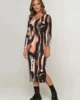 Sukienka ołówkowa, lekko dopasowana. Długość midi z rozcięciem z boku. Rękaw klasycznie wszyty, długi. Dekolt w szpic. Wkładana przez głowę. Sukienka bez podszewki. Uszyta z miękkiej dzianiny swetrowej.