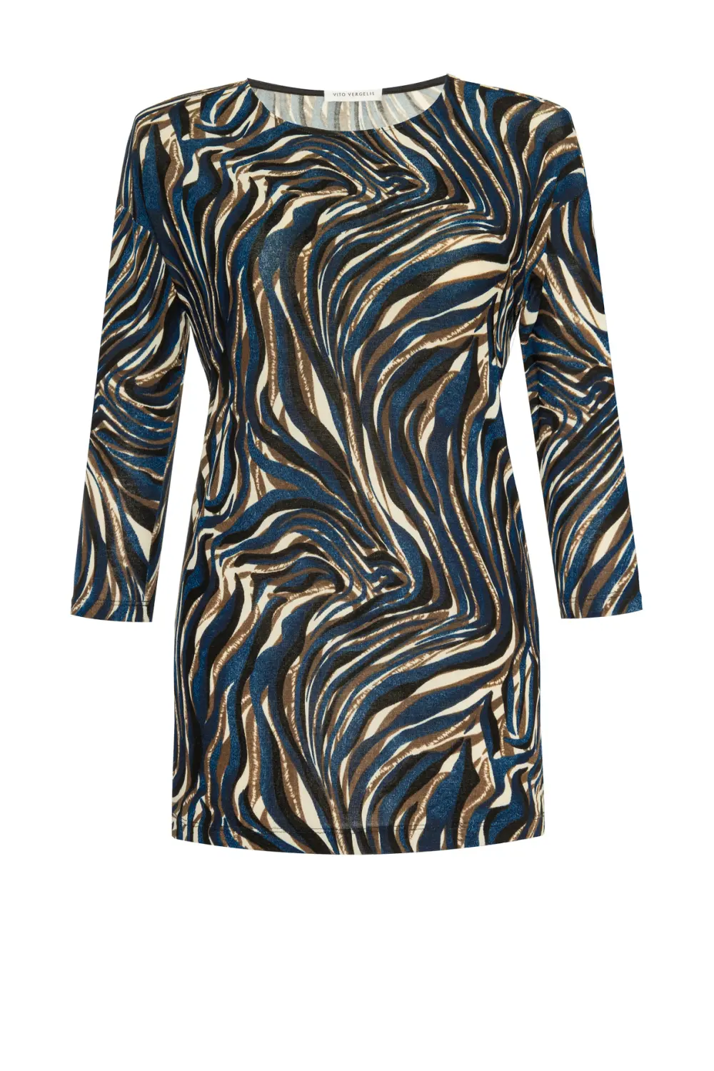 Tunika swetrowa damska we wzory to doskonała alternatywa dla sweterka na chłodniejsze dni. Damska tunika z nadrukiem w stylu casual. Uszyta z miękkiej dzianiny sweterkowej, niezwykle przyjemnej w dotyku. Luźny, lekko przedłużony fason o prostym kroju. Idealna do spodni, legginsów, czy spódnicy midi. Sweter Vito Vergelis jest wyjątkowy z kilku względów. Ciekawy nadruk będący mieszanką zwierzęcych wzorów i liści, prosty fason a to tego miękka dzianina, której nie chce się zdejmować. W zależności o wzrostu możesz ją nosić jako długi sweter lub tunikę. Idealna na jesień zimę 2025 2026.